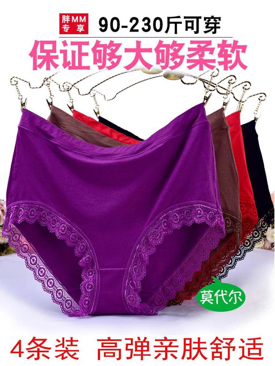 4条 加肥大码中老年人妈妈内裤女莫代尔高腰胖mm中年妇女纯棉裤头
