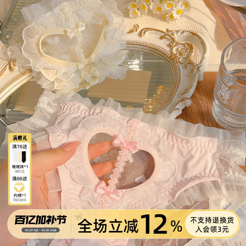 一眼心动~花芽爱心镂空包臀纯欲女生甜美夏薄款网纱性感少女内裤
