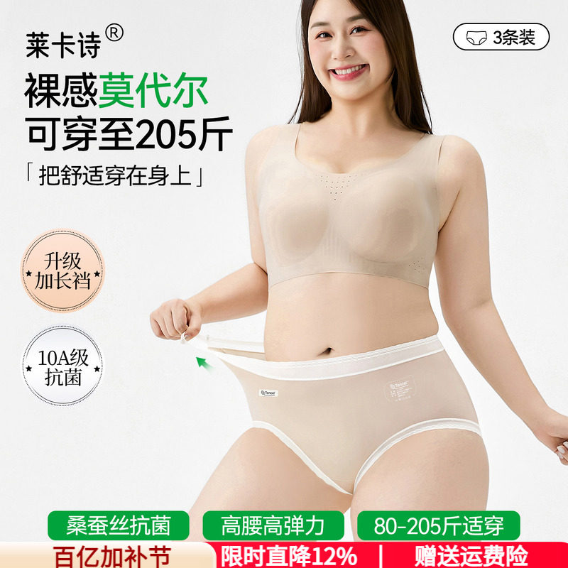 大码内裤女莫代尔200斤抗菌加长裆桑蚕丝无痕透气胖mm女士三角裤
