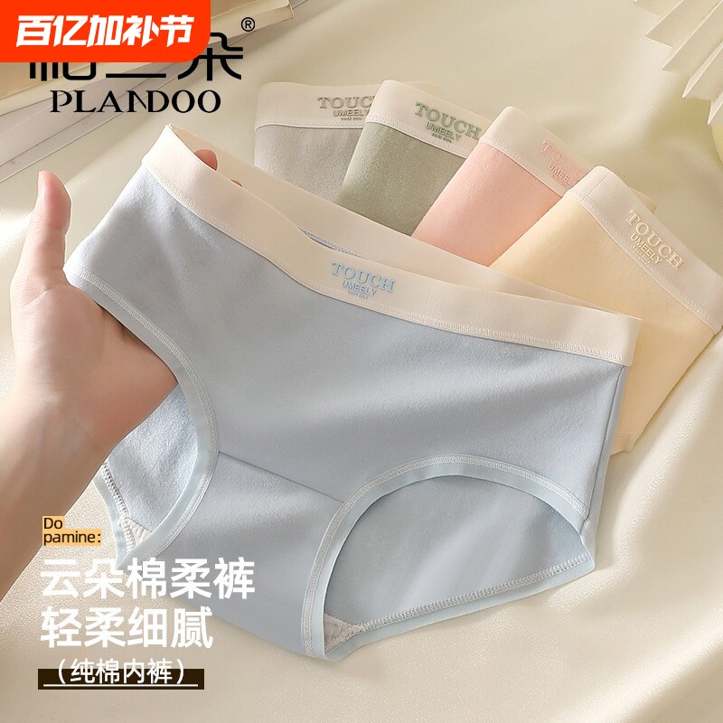 纯色组合亿宠儿内裤女纯色棉质中腰高腰舒适有机棉包臀透气女裤头