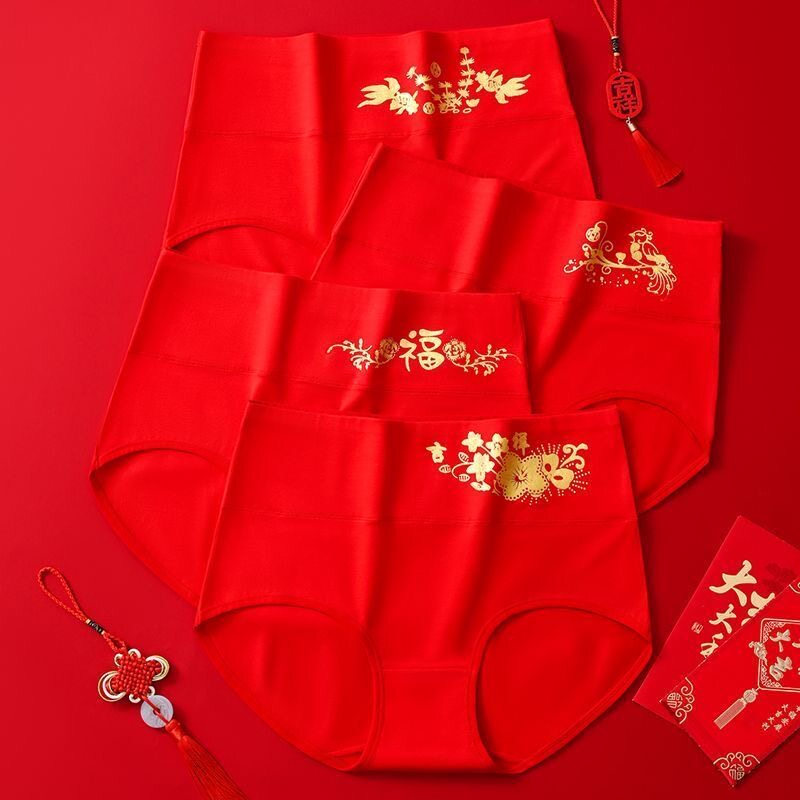 纯棉高腰大码女士内裤简约胖mm加肥加大中老年中年大红色福本命年