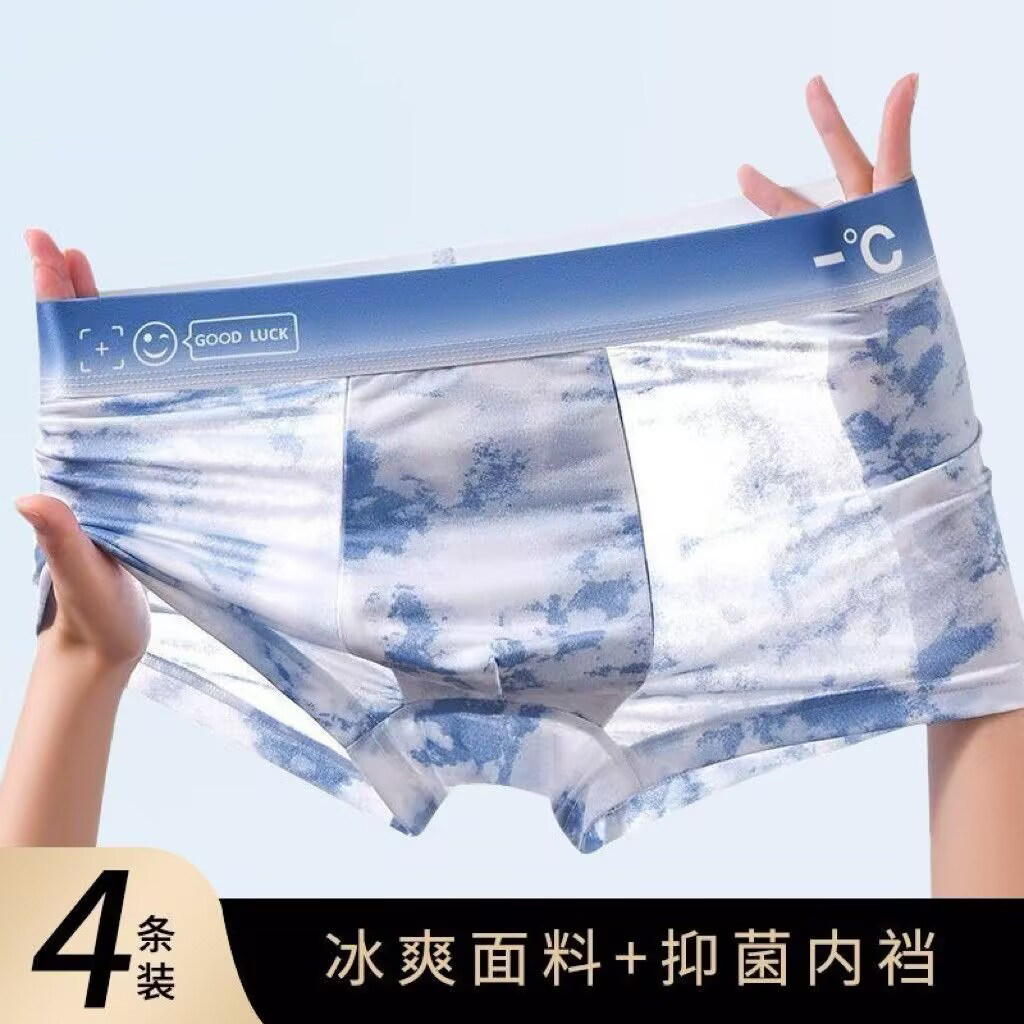 男士内裤冰丝速干薄款夏季平角裤凉爽印花透气抗菌运动四角短裤头