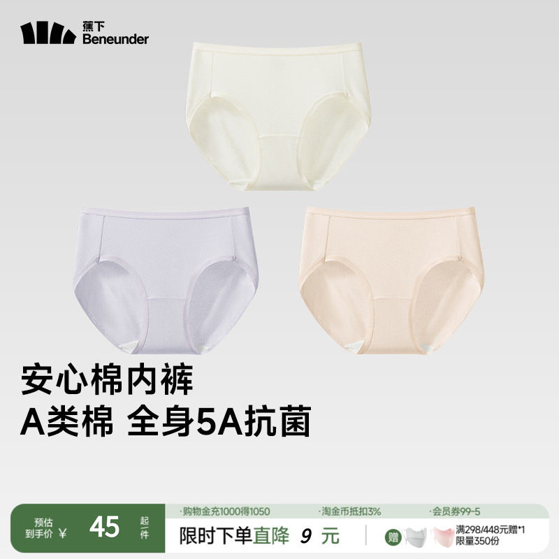 蕉下女士抗菌棉质内裤CT387透气底裤3条装5A抗菌平角女旅行替换装