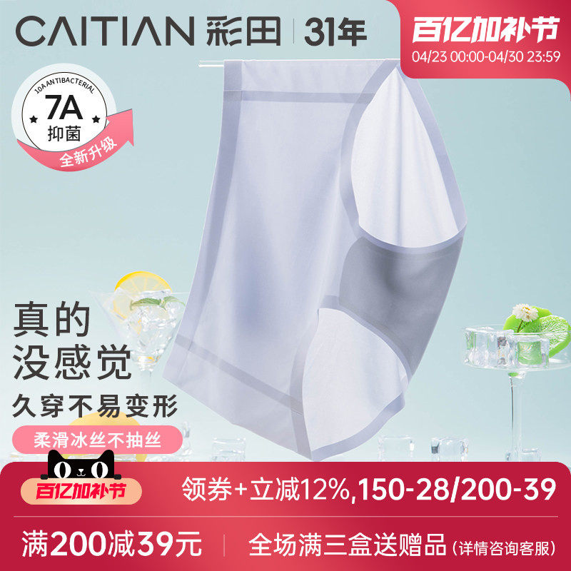 彩田2026年凉感冰丝内裤女6条装无痕一片式透气抗菌底裆女士内裤