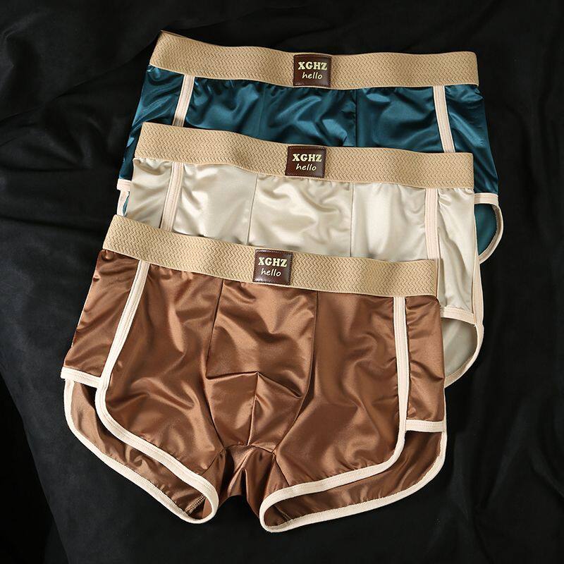 冰丝缎面男士内裤平角男生夏季舒适男款透气四角轻奢高档短裤