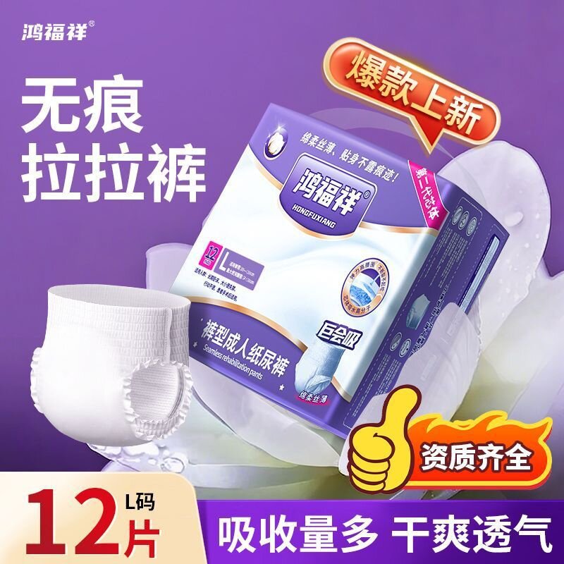 [老人防漏内裤式]鸿福祥成人拉拉裤加厚男女透气干爽强吸收舒适型