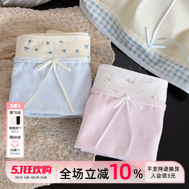 『杏花微雨』韩系女生碎花10A抑菌加长裆内裤纯棉孕妇中高腰辣妈