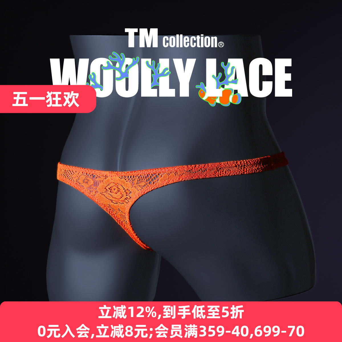 TM collection男士内裤日本制薄款透肤羊毛蕾丝性感低腰丁字T裤
