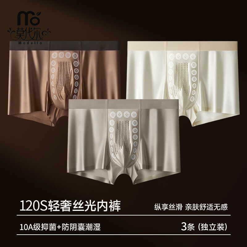 莫代尔男士内裤防阴囊透气潮湿2026新款冰丝无痕男款平角短裤头夏季 梦璃棕+浣沙白+香槟色 3条 2XL 【适合130-150斤】
