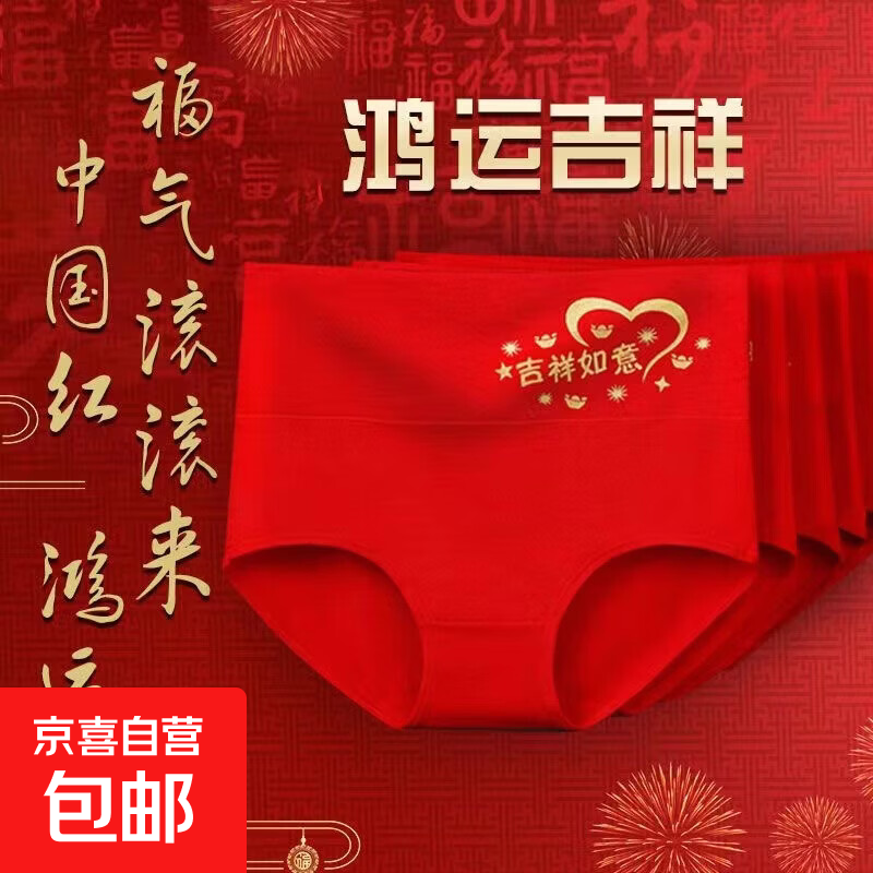 马年大红色纯棉女士内裤本命年高腰大码三角裤新年短裤头结婚喜庆 3条装[吉祥+福字+锦 2XL 125-150斤