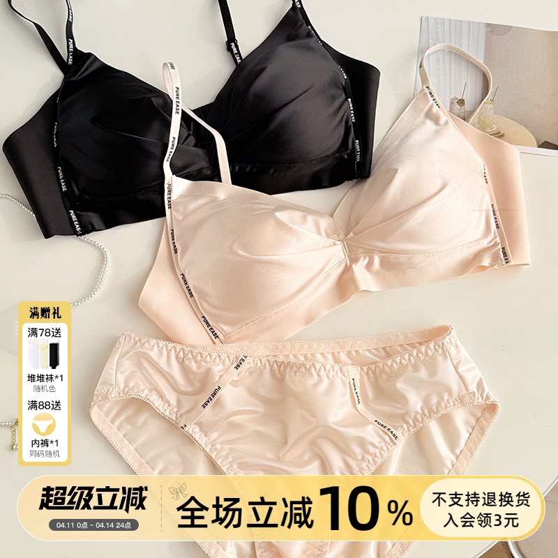「奶油布偶」法式纯欲缎面ab杯内衣性感三角杯薄款文胸内裤两件套