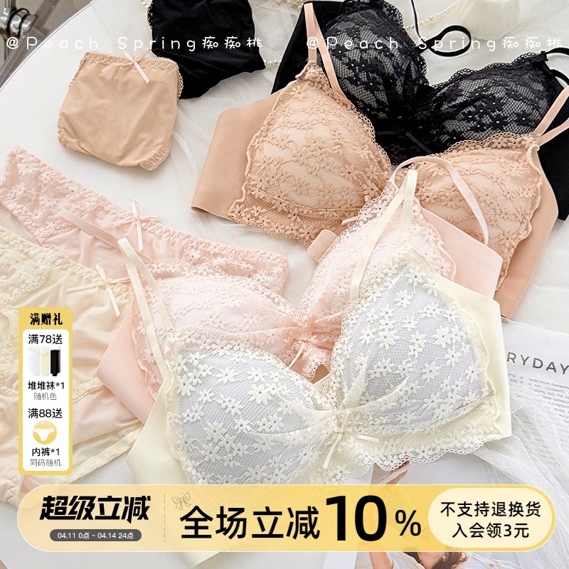 「爱丽梦丝」法式蕾丝性感无钢圈内衣小胸聚拢收副乳文胸内裤套装