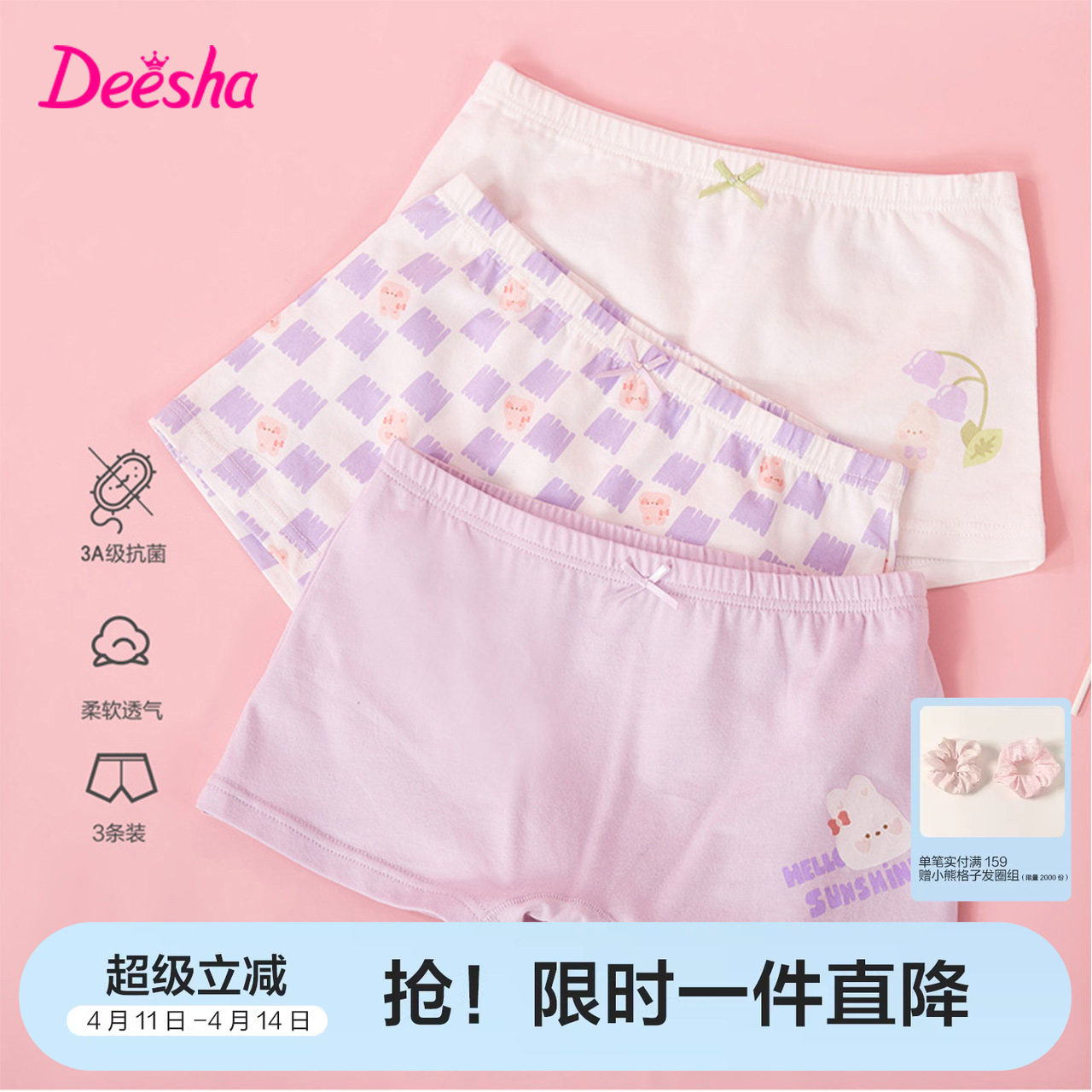 【3条装】笛莎女童内裤大童女宝宝四角平角短裤儿童女孩裤头裤衩