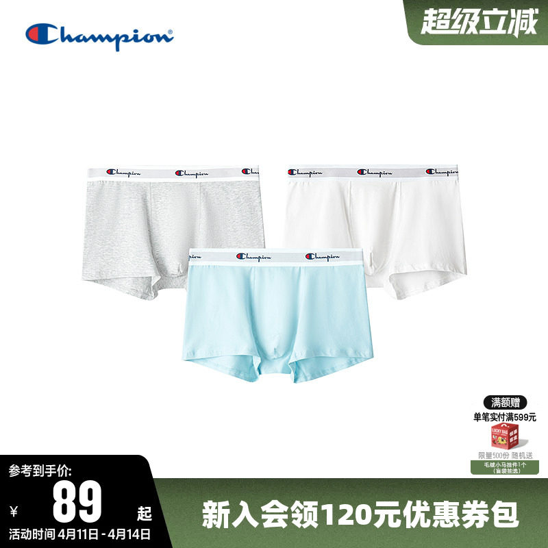 Champion冠军男士内裤2026新款潮牌舒适四角裤平角裤短裤三条装