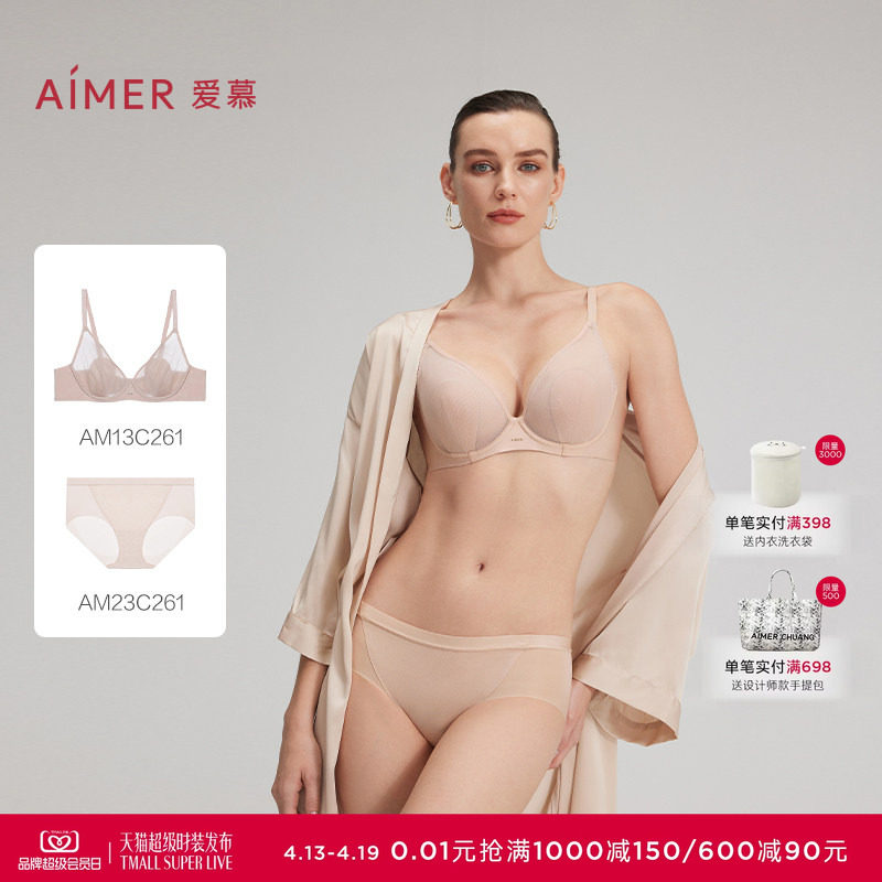 爱慕春夏织锦花瓣内衣女3/4薄衬垫大胸显小文胸内裤套装