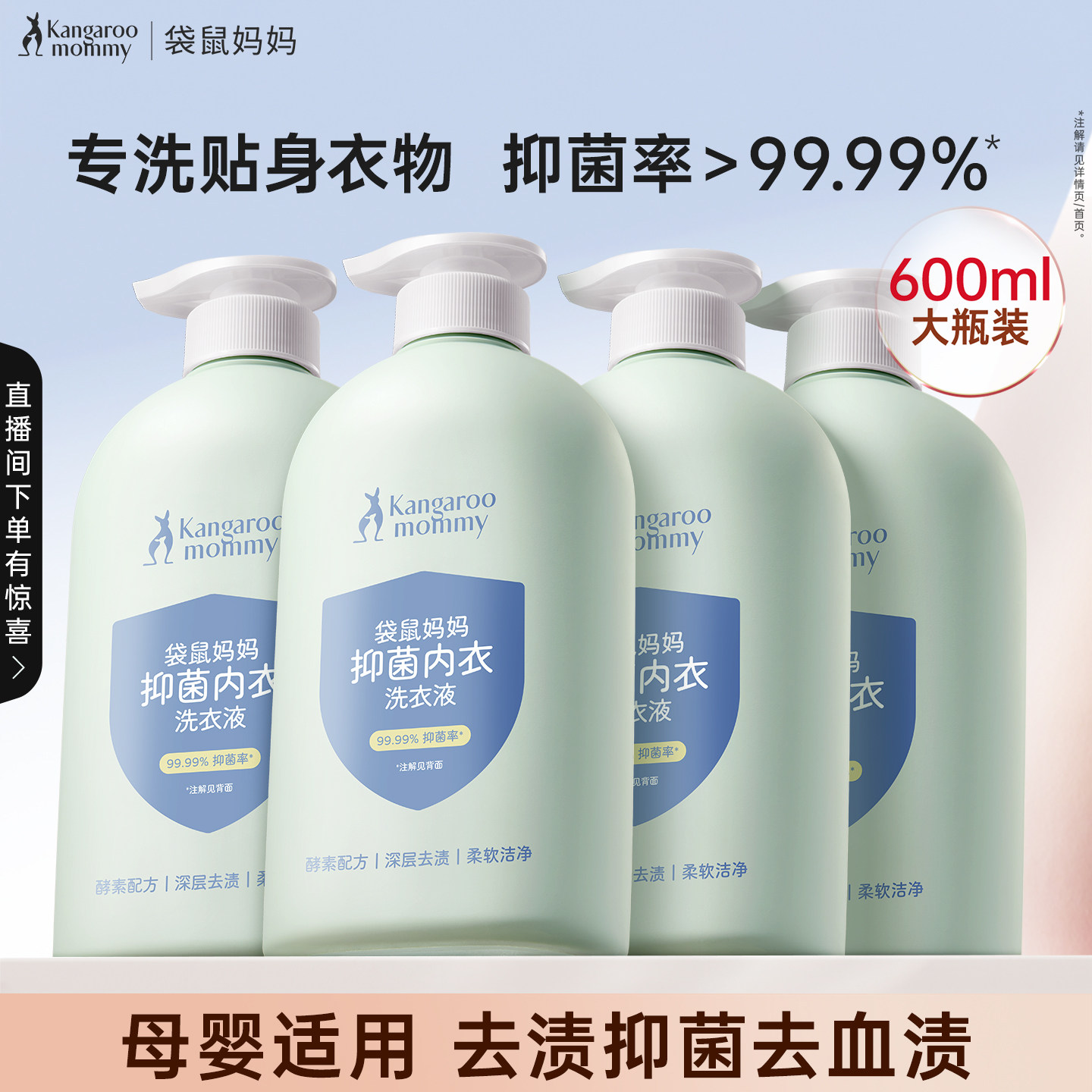 袋鼠妈妈婴儿内衣洗衣液内裤清洗液女专用宝宝去血渍除菌除螨正品