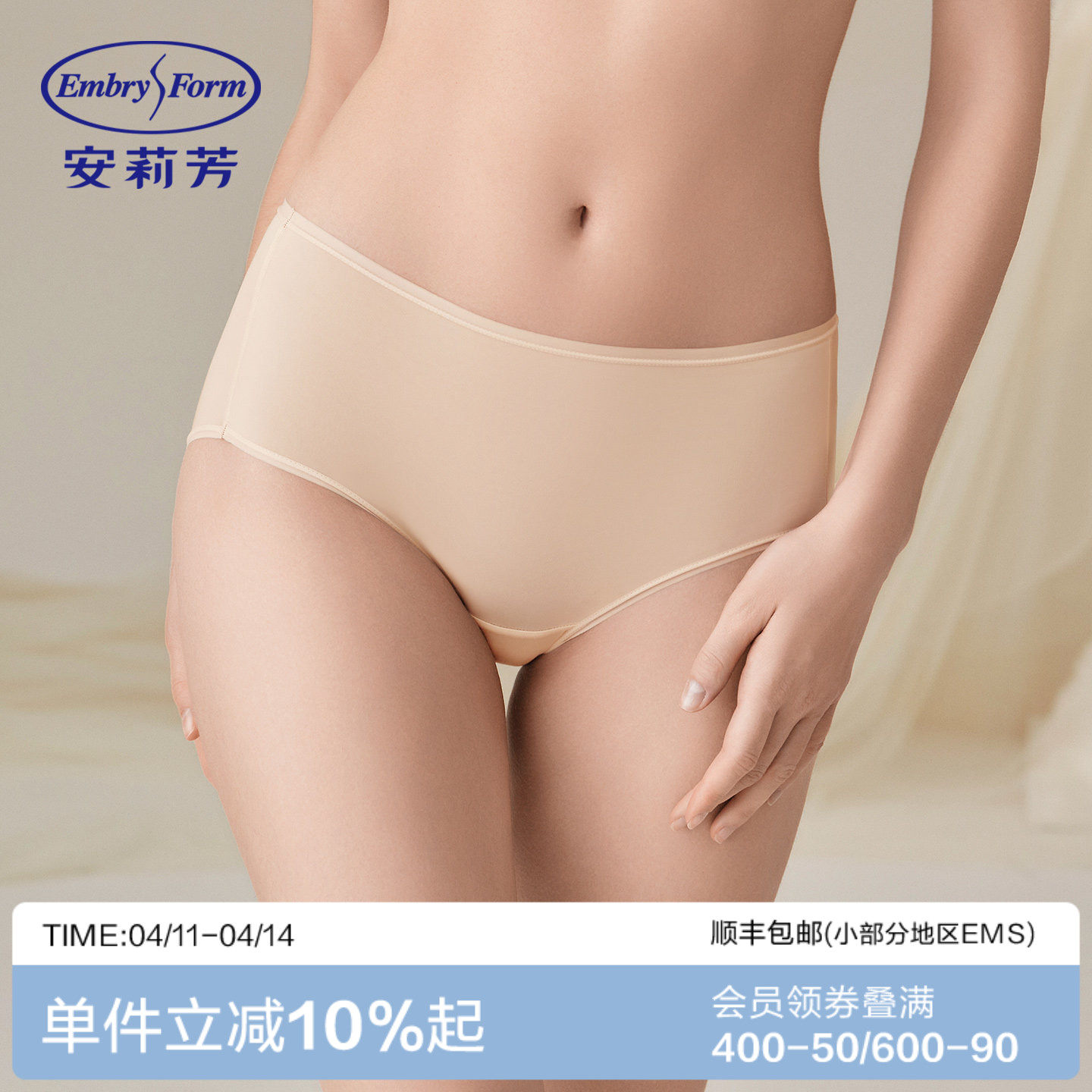 【3条147元轻柔裤】安莉芳简约无痕内裤女纯棉底档抗菌中腰三角裤