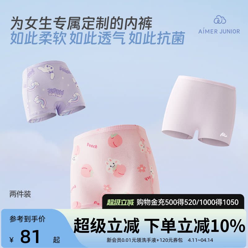 爱慕少女莫代尔平角内裤女童中小学生少女四角裤高弹抗菌棉底裆