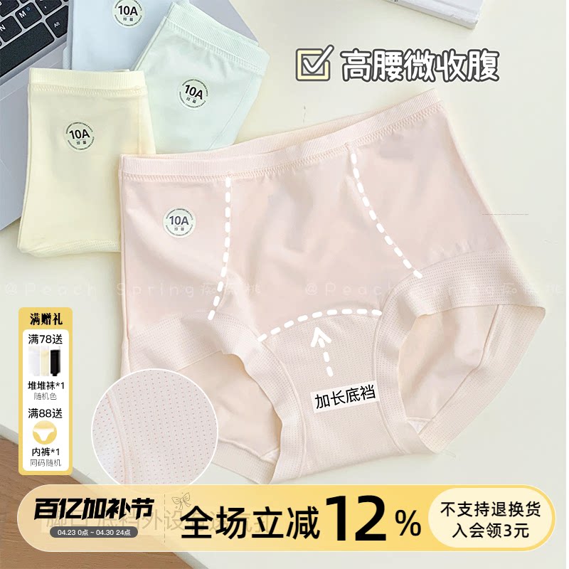 高能量女主~60支纯棉内裤女生加长裆10A类抑菌中高腰收腹裤女透气