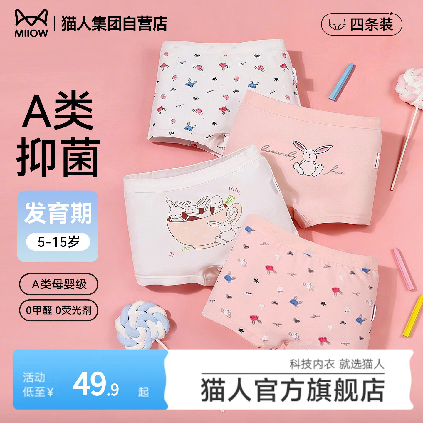 Q21x姆明联名小海绵净化裤儿童内裤男女童平角5A级抗菌印花短裤