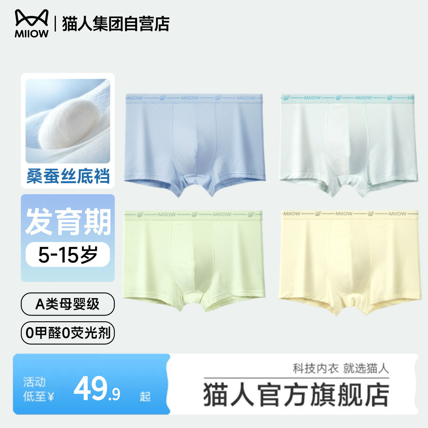 猫人儿童男童舒适亲肤透气抑菌发育期不夹屁屁短裤四角裤内裤