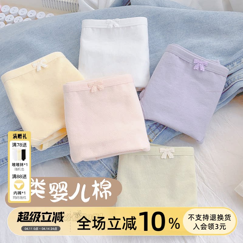 纯净少女。5条纯棉内裤女生A类婴儿棉奶油风舒适透气全棉裆中腰女