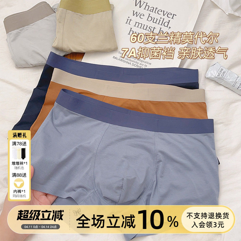 商务兰精 | 60支莫代尔男士内裤7A抑菌平角裤秋季青年男四角短裤