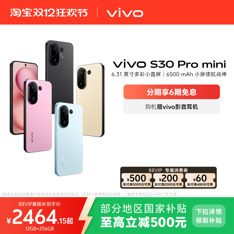 【国家补贴至高省500】vivo S30 Pro mini多彩小直屏长续航学生新品AI手机官方旗舰店官网正品