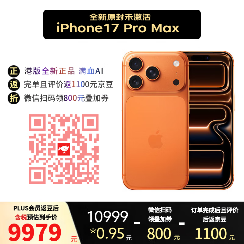 Apple/苹果 iPhone17 Pro Max 256G 星宇橙色 港版 满血AI 手机 双12 海外工作 出国旅行