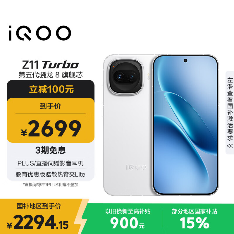 vivo iQOO Z11 Turbo 12GB+256GB 天光白骁龙8Gen5 自研电竞芯片Q2 2亿大底超级主摄 学生游戏手机