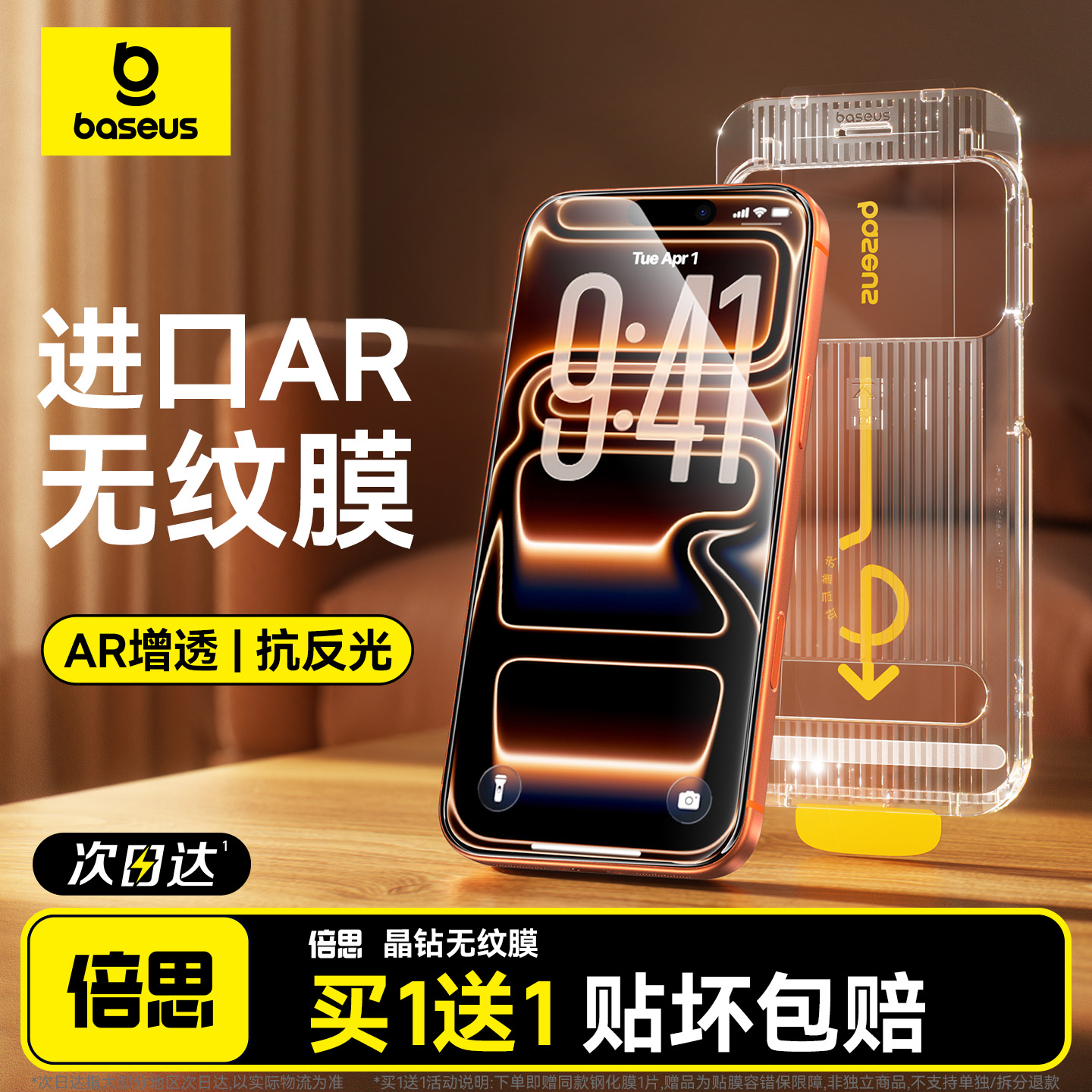倍思无纹膜适用苹果iPhone17钢化膜AR抗反射16ProMax保护膜15Pro无尘仓14手机贴膜13全屏覆盖12防摔11高清Air