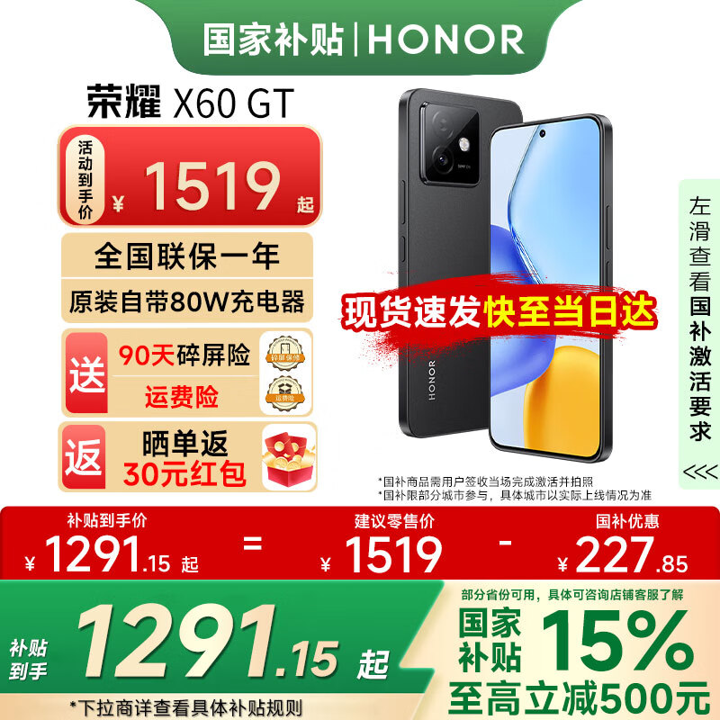 荣耀X60GT【国家补贴】骁龙旗舰芯片 荣耀绿洲护眼屏 6300mAh青海湖电池 5G新品手机 幻夜黑 12GB+256GB 官方标配