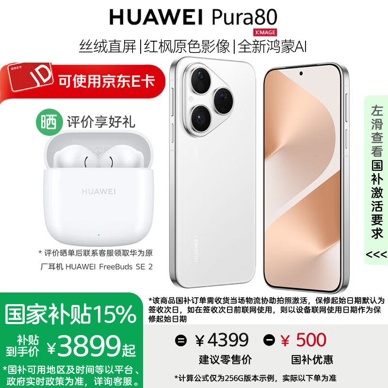 华为Pura 80 手机【国家补贴500元+评价送华为蓝牙耳机】 丝绒白 12GB+512GB