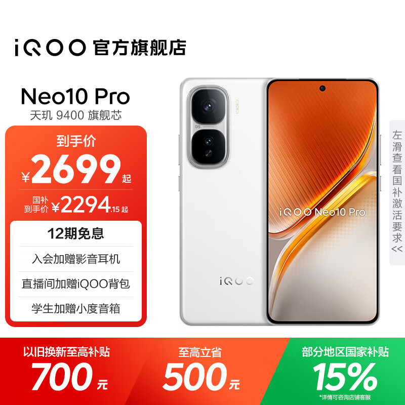 vivo iQOO Neo10 Pro 国家补贴 天玑9400 电竞芯片Q2 120W超快闪充 超声波3D指纹 AI游戏学生全新手机 驰光白 16GB 512GB 官方标配