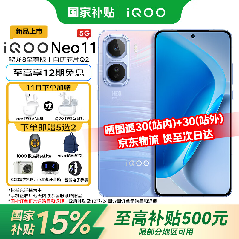 vivoiQOO Neo11手机 骁龙8至尊版 自研芯片Q2 7500mAh长续航 144HZ 国家补贴 新品5G 学生电竞游戏手机 面对疾风 12GB+256GB 官方标配