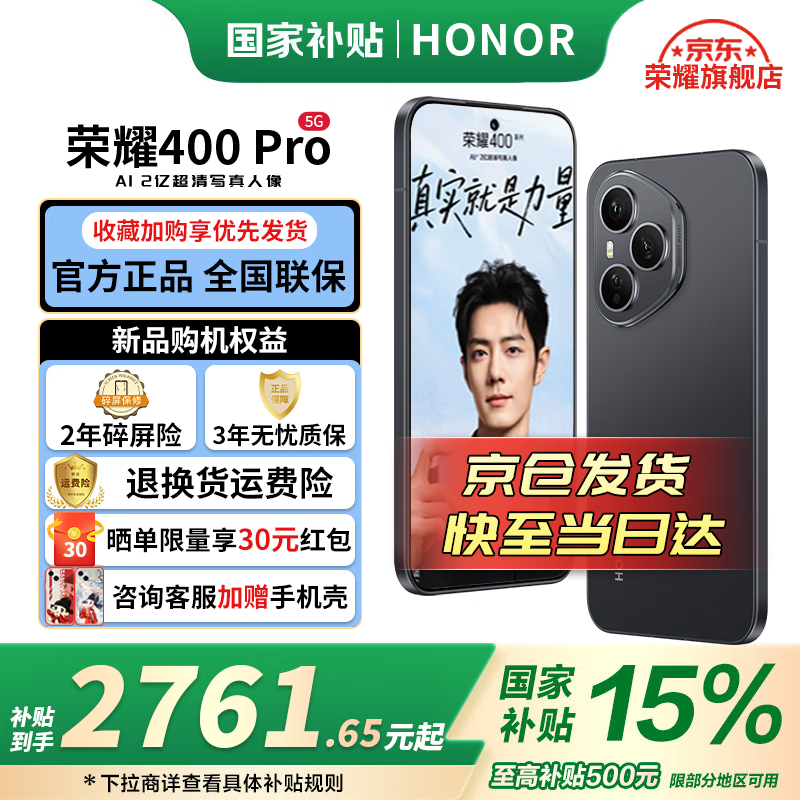 荣耀400Pro 新品5G手机 【国家补贴】 幻夜黑 12GB+256GB【2年碎屏险】 官方标配