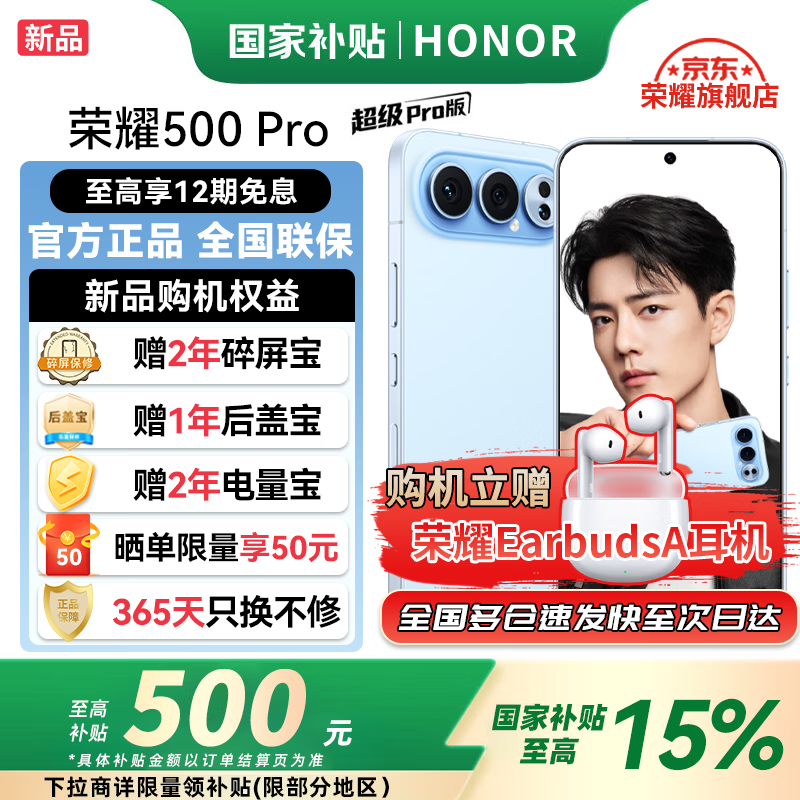 荣耀(HONOR)500pro 【肖战同款】 新品5G手机 超级Pro版 2亿人像全能实况 海蓝宝 16GB+512GB【2年碎屏险】 官方标配