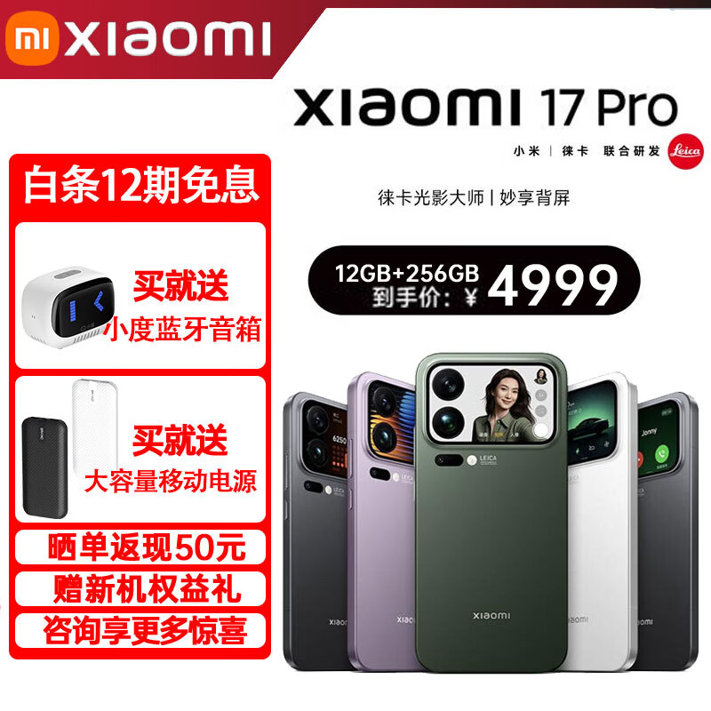 小米(MI)17Pro 妙享背屏 徕卡光影大师 第五代骁龙8至尊版 新品5G手机 白色 12+512GB 12期免息