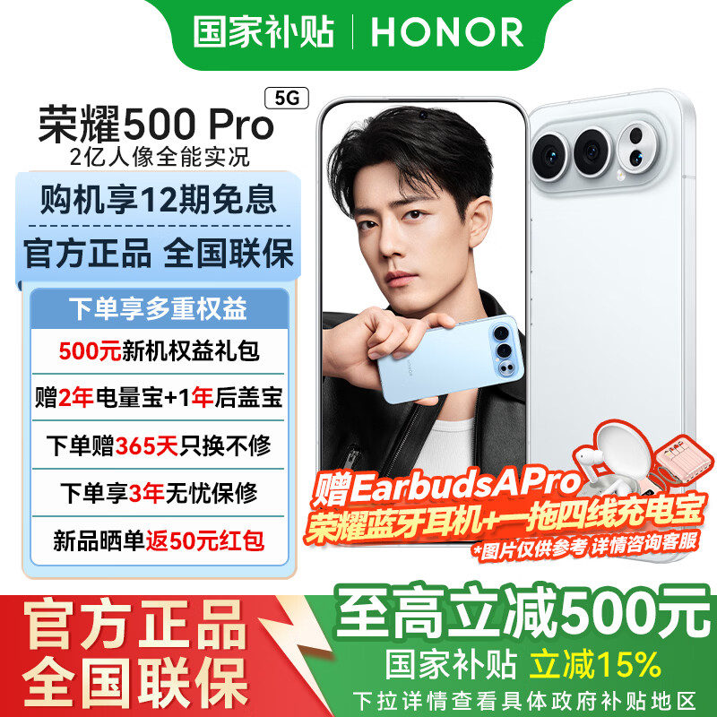 荣耀500 Pro 【国家补贴】新品5G手机 【肖战同款】2亿人像全能实况 月光银 16GB+512GB 官方标配