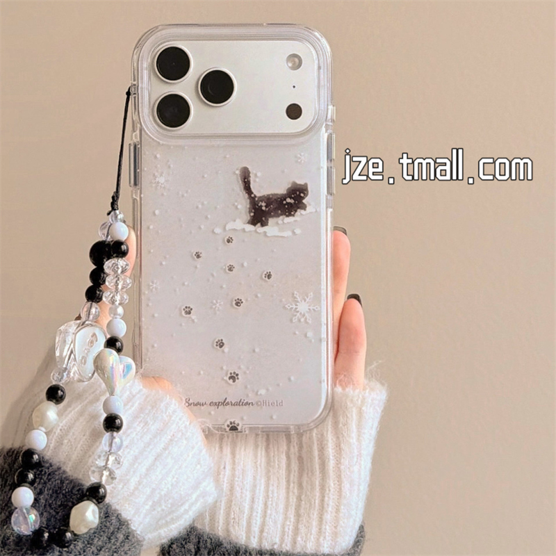 jze韩系ins小众冬日可爱雪地猫咪适用苹果17ProMax手机壳iphone15新款16pro女13带链条15pro双层14防摔保护套