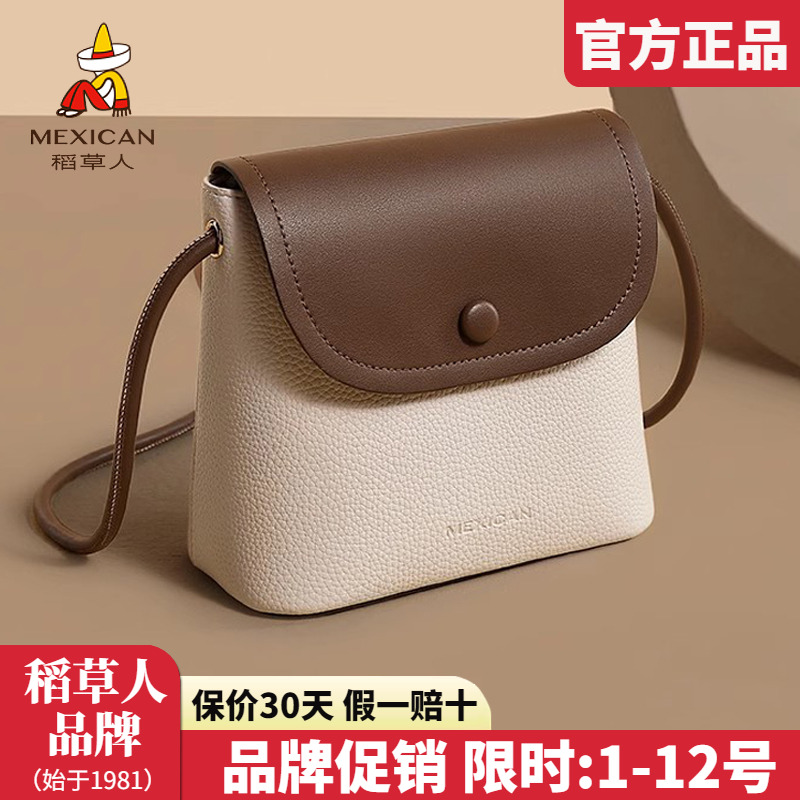 稻草人包包女包2025新款流行单肩包竖款手机包撞色女士斜挎包正品