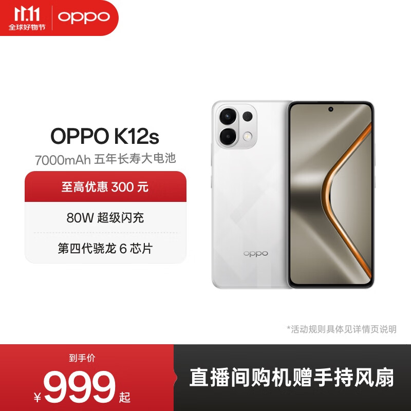 OPPO K12s 5G手机 7000mAh五年长寿大电池 80W超级闪充 全新骁龙6芯片 NFC 红外遥控 AI手机 星芒白 8GB+128GB