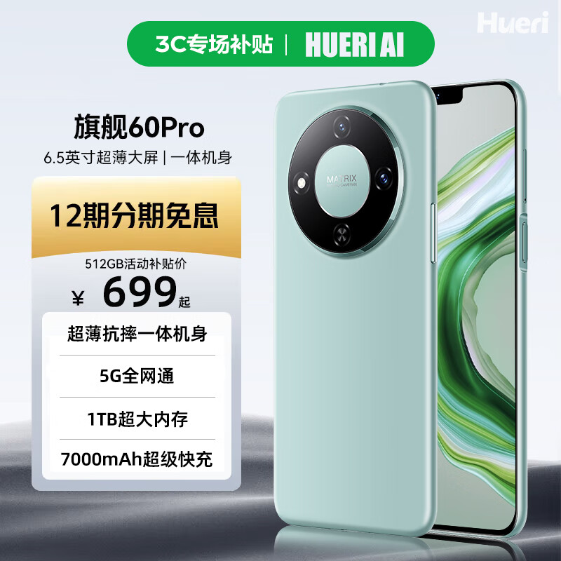 HUERIAI新款60Pro 5G手机 1TB超薄一体机 7000mAh旗舰游戏高刷电竞大屏全网通双卡双待百元机学生便宜 翡翠绿【补贴秒杀 | 今日特价】 16GB+512GB 官方标配