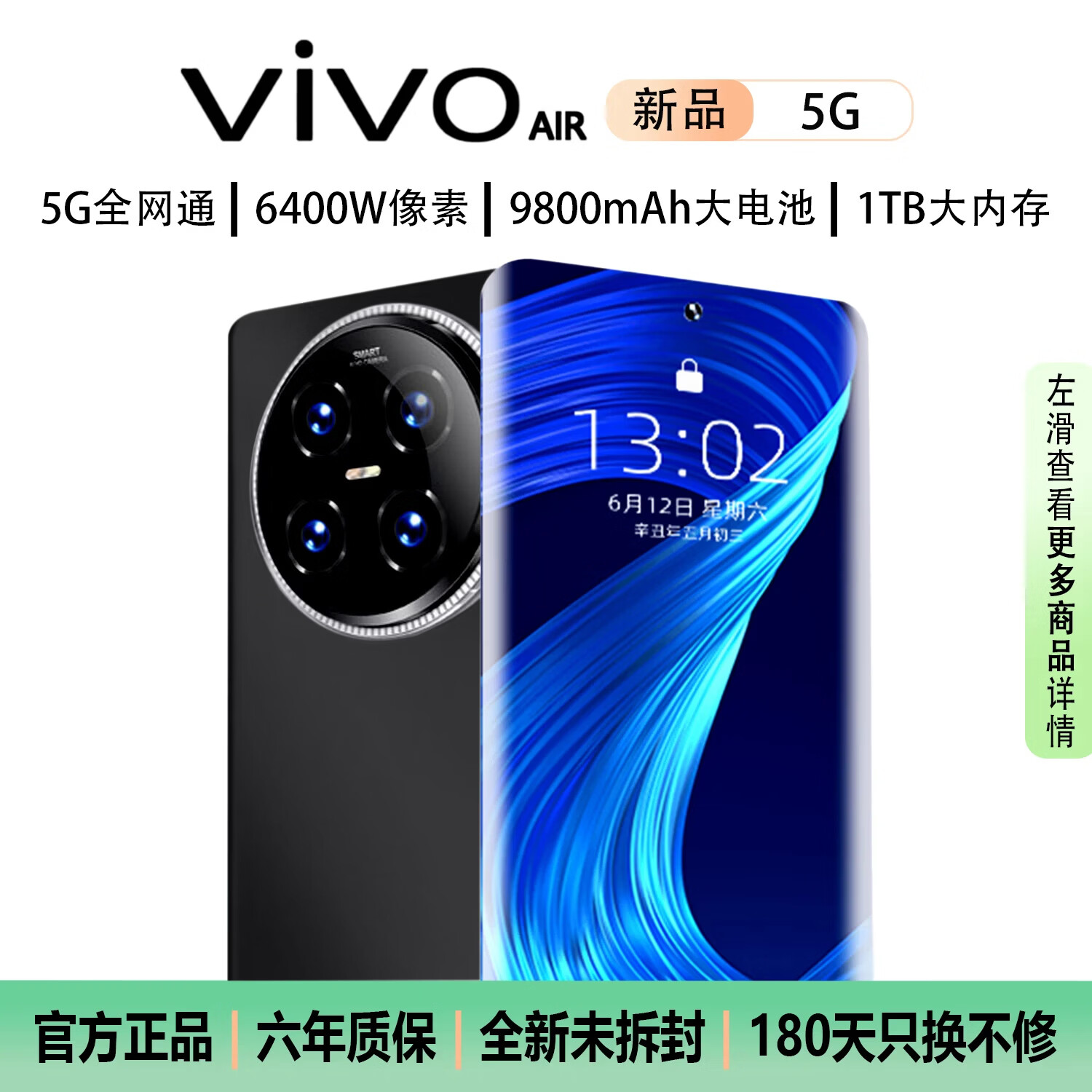 VIVOAIR2026新品1TB手机9800mAh快充长续航学生电竞老人AI智能拍照抗摔防水补贴25%全新原装正品 黑色 16GB运行+1TB(1024GB)内存 官方标配