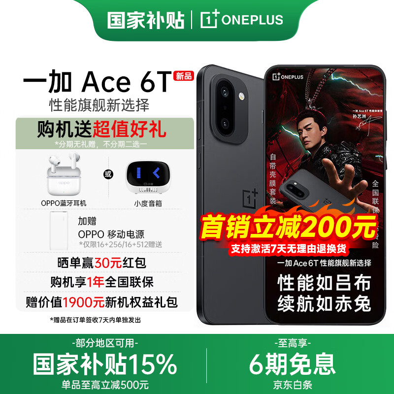 一加 Ace 6T 国家补贴 第五代骁龙8 165Hz超高刷电竞屏 学生游戏oppo智能5G手机 闪速黑 12GB+256GB 官方标配【国家补贴】