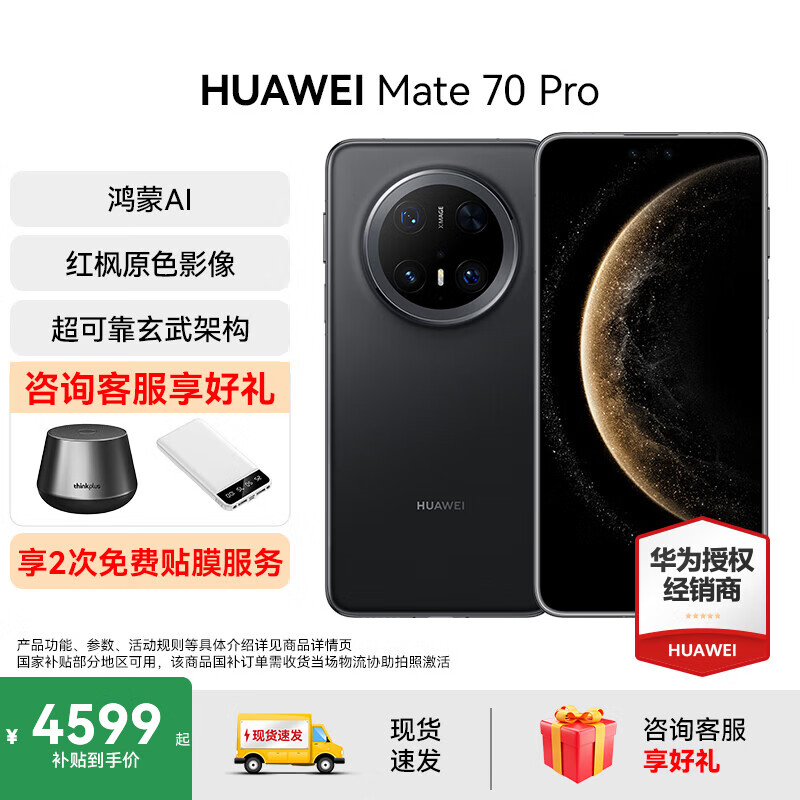 HUAWEI Mate 70 Pro旗舰手机 华为mate70pro新品上市【国家补贴 当天发】红枫原色影像华为鸿蒙智能手机 曜石黑 12G+512GB 官方标配