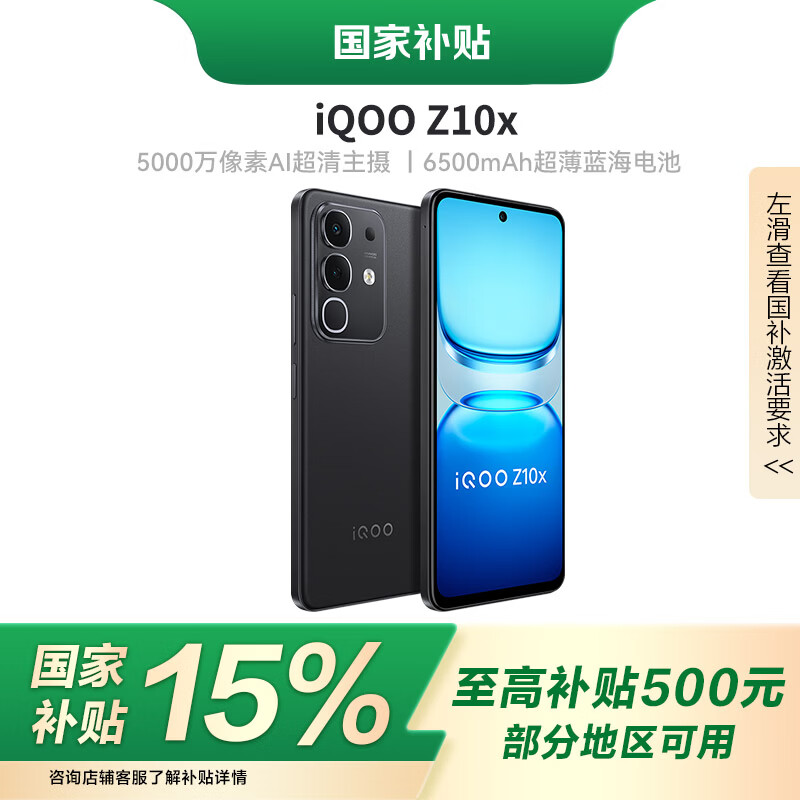 vivo【国家补贴15%】iQOO Z10x 6500mAh薄蓝海电池 天玑7300 护眼LCD屏幕 电竞手机 星穹黑 8+256GB 官方标配