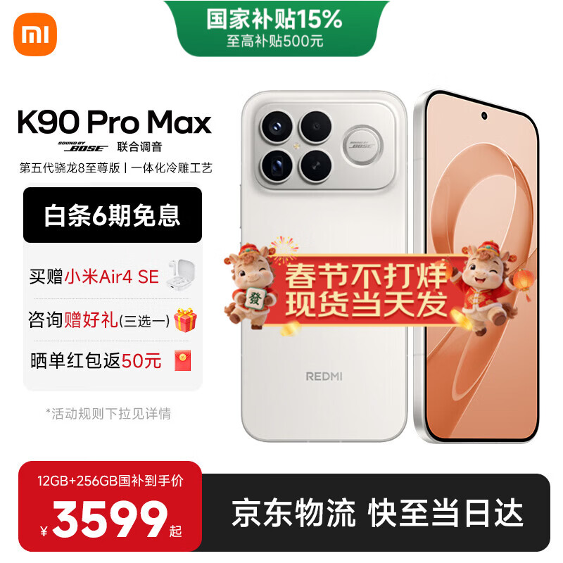 小米(MI)红米K90promax 国家补贴 第五代骁龙8至尊版 7560mAh大电池 BOSE联合调音REDMI 小米5G红米手机 流金白 12GB+256GB 【官方标配】