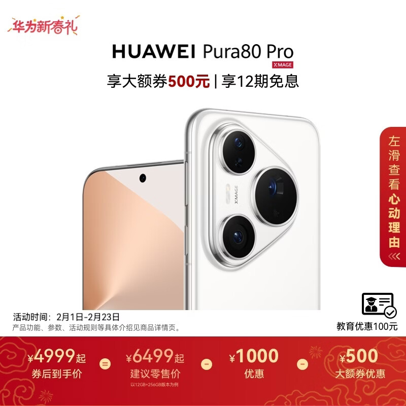 HUAWEI Pura 80 Pro 一英寸主摄 个性色卡 AI 辅助构图 华为智能手机 釉白 12GB+512GB