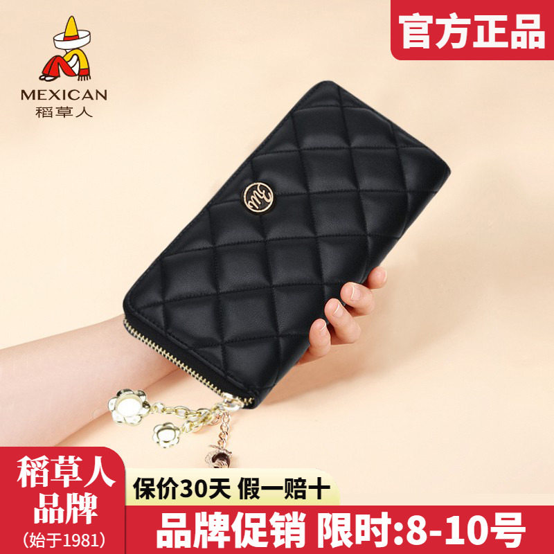 稻草人钱包女长款2025新款手拿包菱格拉链小香风手机钱夹官网正品